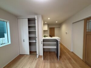 各所に収納を設けることで、すっきりとした空間を保ちやすく、暮らしやすい住まいとなっています。