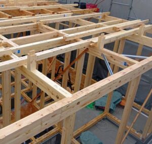 現場では職人たちの手によって柱や梁が次々と組み上げられ、建物の骨組みが完成しました。