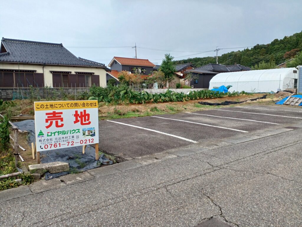 | 取引態様 | 一般媒介 | 引渡条件 | 建築条件付 ※建築条件付とは土地売買契約後、3ヶ月以内にロイヤルハウス加賀店(株式会社北出木材工業)と住宅の建築請負契約を締結していただくことを条件として販売いたします。この期間内に住宅を建築しないことが確定したとき、または住宅の建築請負契約が成立しなかった場合は土地売買契約は白紙となり、受領した金銭は全額無利息で返却いたします。 |