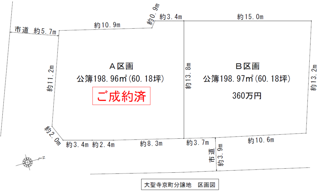 | 接道状況 | 南 5.9m 公道 接面11.2m ・ 東 3.7m 公道 接面14.1m ・ 二方道路 | 私道面積 | なし |