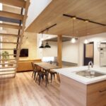 10帖の吹抜けがある27帖のLDK+畳コーナーの大空間!リビング横12帖の屋外タイルデッキ・オープンキッチン・エコカラットタイル貼り・スケルトン階段・造作洗面化粧台など、こだわりのディテール・こだわりのデザインをふんだんに盛込んだ、外観がシャープ内観がナチュラルなモダン住宅です。